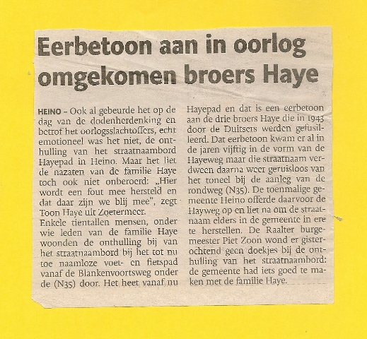 Het is nu 2012 en een Gedenksteen op die noodlottige plaats aan de Zwolseweg is er nog steeds niet.