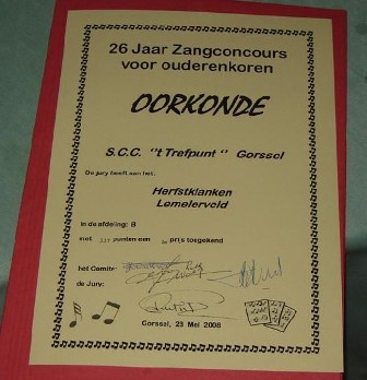 Het Concours op 15 mei 2009 te Gorssel betekent tevens mijn laatste activiteit met dit koor.