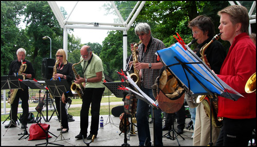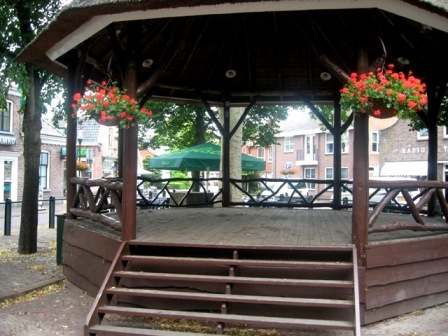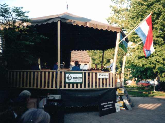 Elburg - Muziektent in Elburg.(2004) Op de tent Shanty koor 'De Iselanders' uit Zwolle.