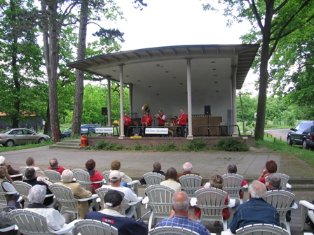 Heino - Muziekver. 'Ons Genoegen' voor en op de toenmalige Muziekkoepel.