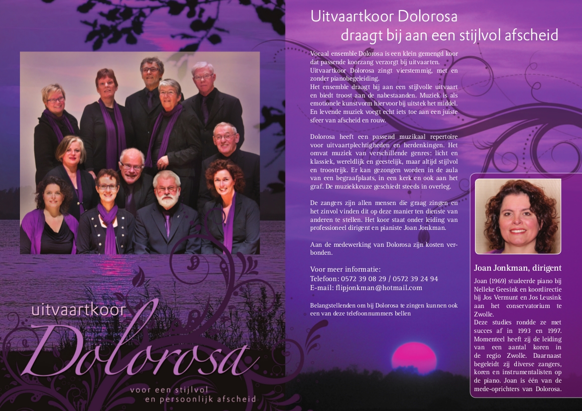 Liederen die Uitvaartkoor 'Dolorosa' zingen staan aangegeven.