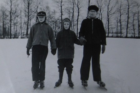 Schaatsen op ondergelopen weiland bij de Fam. Baarslag aan de Blankenvoortsweg te Heino.