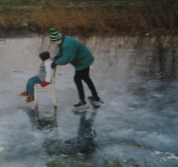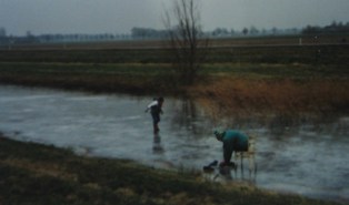 Schaatsen op de uiterwaarden nabij Herxen. (maart 2005)
